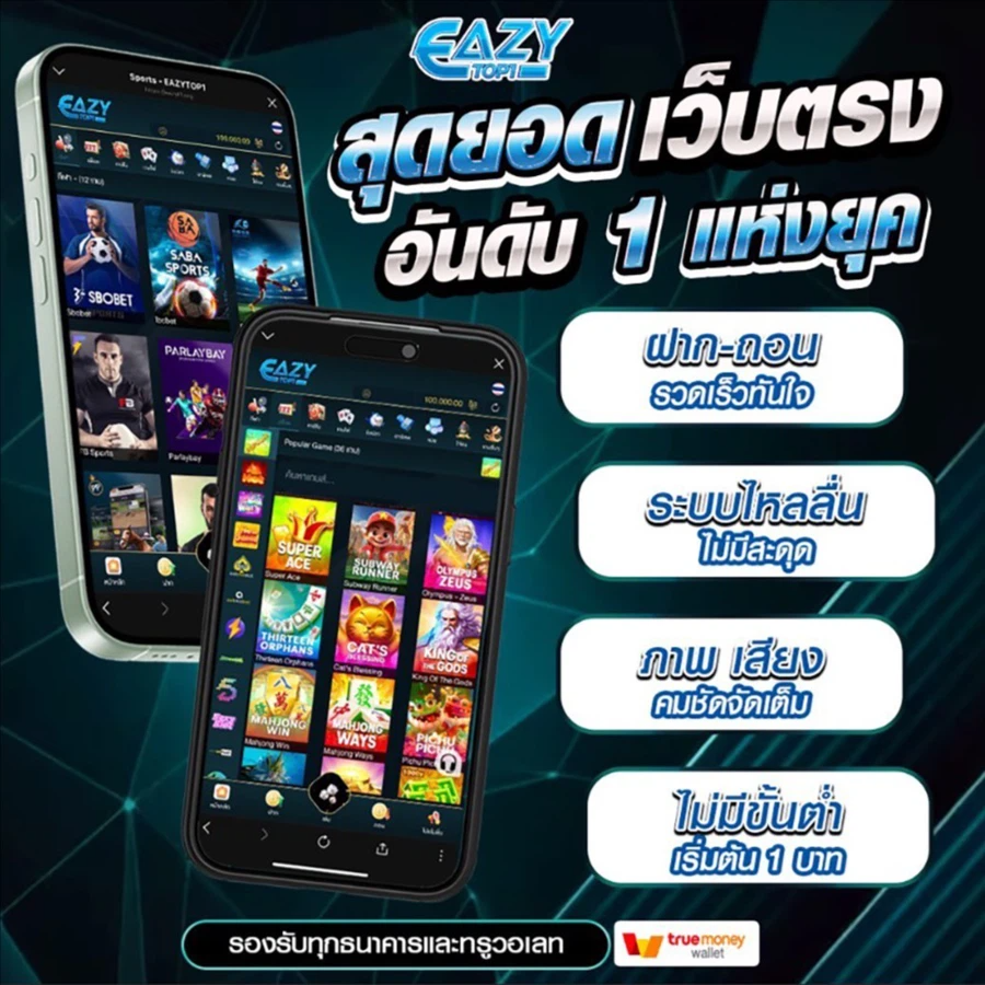 EAZYTOP1 เป็นเว็บพนันออนไลน์ที่ให้บริการครบวงจรสำหรับนักพนันทุกระดับ เว็บไซต์นี้ได้รับการพัฒนาขึ้นด้วยเทคโนโลยีล่าสุดเพื่อตอบสนองความต้องการของผู้เล่นในยุคดิจิทัล โดยเฉพาะอย่างยิ่งระบบฝาก-ถอนอัตโนมัติที่ทำงานตลอด 24 ชั่วโมง ช่วยให้คุณสามารถทำธุรกรรมทางการเงินได้อย่างสะดวกและรวดเร็วไม่ว่าจะอยู่ที่ไหนหรือเวลาใด